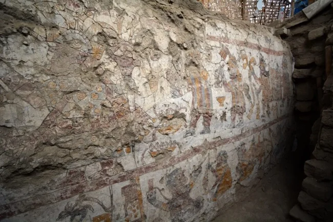 В прибрежной долине Паньямарка исследователи нашли древний тронный зал с колоннами и фресками. По мнению экспертов, церемониальная комната была построена культурой моче 1300 лет назад и принадлежала женщине-вождю.