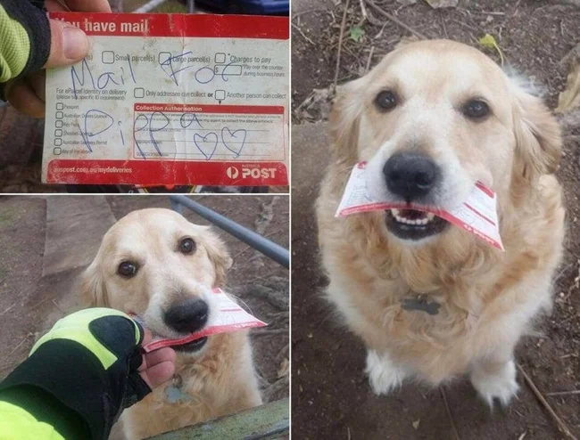 Собачка Пиппа так любит приносить своему хозяину письма, что почтальону надо импровизировать