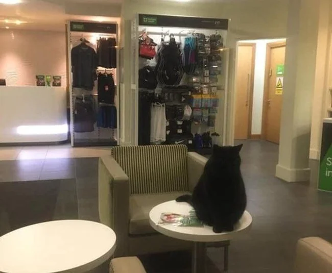 Кот поддерживает спортивные начинания: каждый раз идёт с хозяином в зал и ждёт, пока он занимается