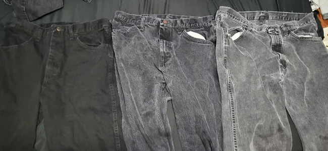 18. «Мои старые черные джинсы после 3 лет ежедневного использования и новые джинсы той же марки»