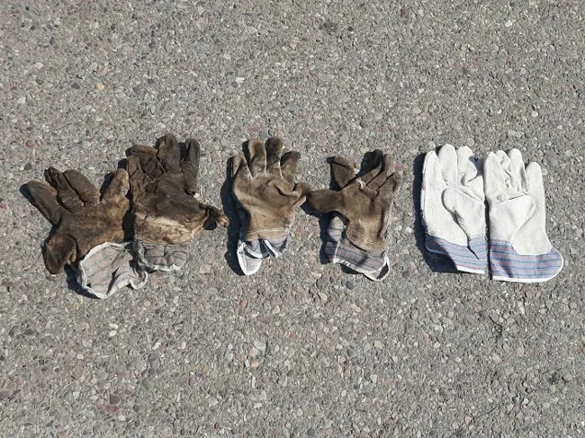 8. «Мои рабочие перчатки справа налево — новые, после одной недели использования и через две недели. Почувствуйте разницу»