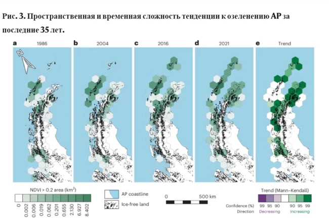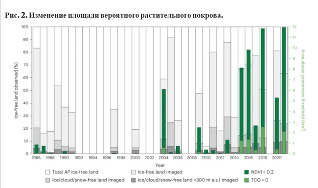 Было обнаружено, что площадь растительного покрова по всему полуострову увеличилась с менее чем одного квадратного километра в 1986 году до почти 12 квадратных километров к 2021 году.