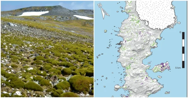 Ученые решили сравнить спутниковые снимки за последние сорок лет и внезапно выяснили, что растительный покров на Антарктическом полуострове увеличился более чем в десять раз. На основной территории преобладают снег, лёд и скалы, и лишь небольшая часть территории заселена практически одними мхами. Так вот эти мхи перешли в наступление и уверенно подминают под себя все новые места.
