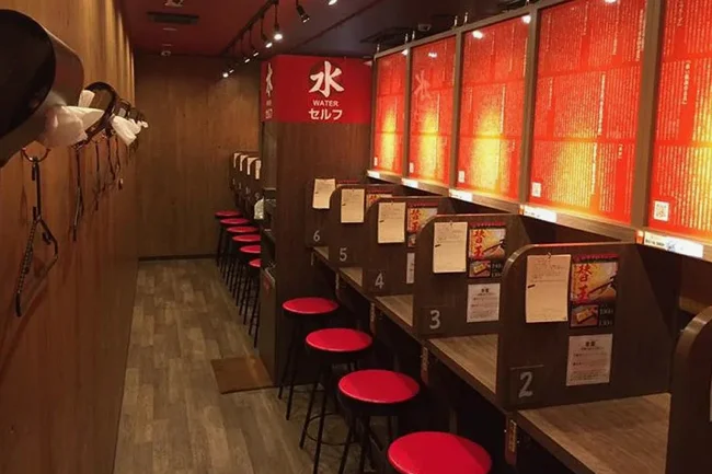 Кафешка с одноместными столиками и перегородками, чтобы не думали случайно общаться!