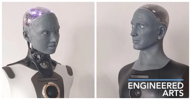 Теперь Engineered Arts представила компаньона для Амеки по имени Ази, который отличается более мужественными чертами лица.