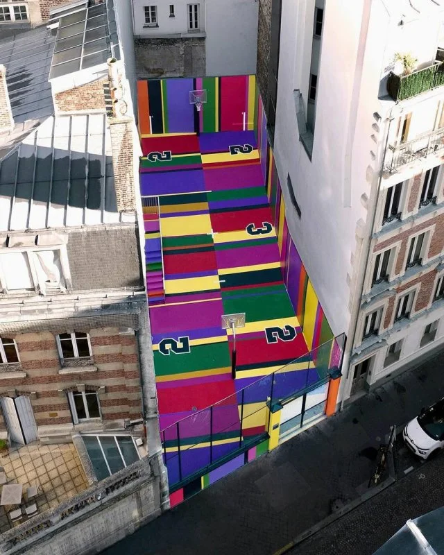 Баскетбольную площадку и популярный фото-спот в парижском районе Pigalle разукрасили по-новому. Новый узор символизирует разнообразие культур, идей и индивидуумов.