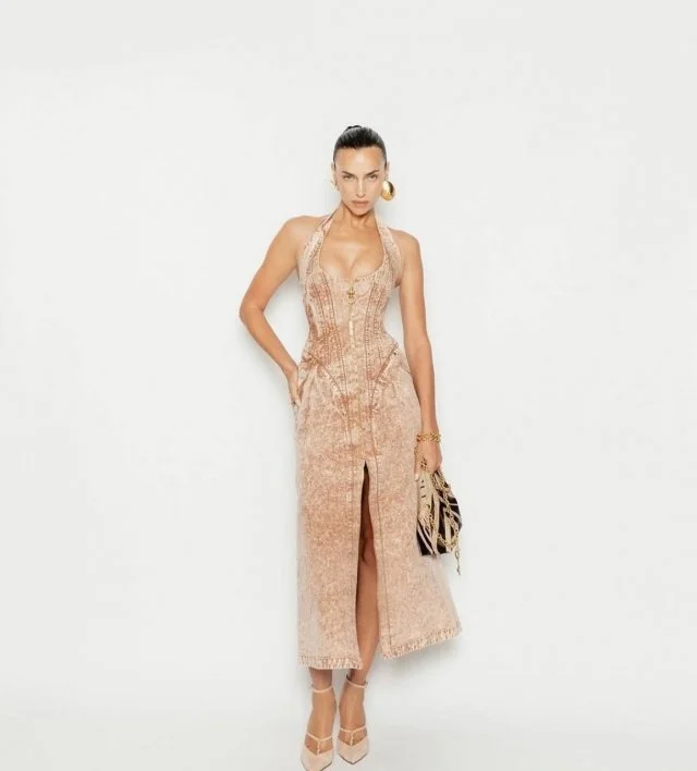 Модель Ирина Шейк вышла на подиум в обтягивающем платье с глубоким декольте. Ирина приняла участие в показе Schiaparelli, модного дома, основанного легендарной Эльзой Скиапарелли. Многие сочли ее платье слишком вульгарным.