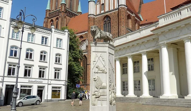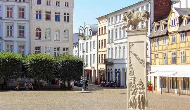 Памятник Генриху Льву находится на Старом городском рынке и посвящён основателю немецкого города Шверина Генриху Льву. История площади восходит к 1160 году. На протяжении веков рынок служил политическим, экономическим и религиозным центром города.
