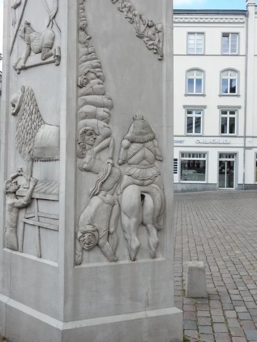 Памятник был установлен в 1995 году в канун 800-летия основателя города и по случаю 1000-летия Мекленбурга. Автором стал скульптор Петер Ленк. После обнародования проекта и открытия памятника мнения о нём были весьма неоднозначными. Одни улыбались, глядя на четырехэтажный столб, других возмущали изображённые на нём непристойности - лошадь с детализированными половыми органами и ряд обнажённых ягодиц.