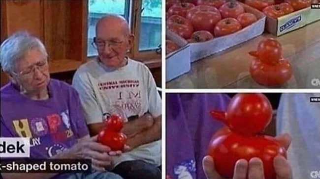 30. "Милейшая пожилая пара попала в новости, потому что они нашли в своем огороде помидор в форме уточки"