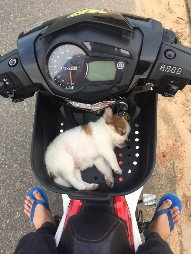 1. "Это Дейзи и Луна. Дейзи не любит поездки на машине, так что Луна утешает ее, пока они обе не засыпают".