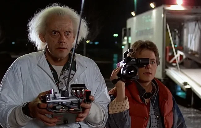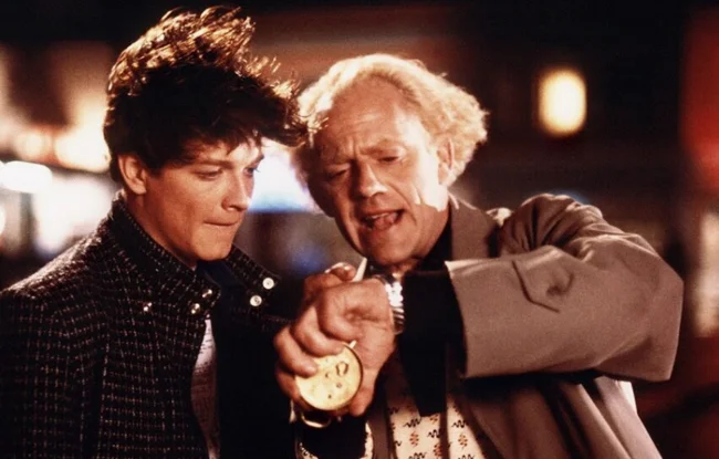 Эрик Штольц и Кристофер Ллойд на съемках фильма "Назад в будущее"