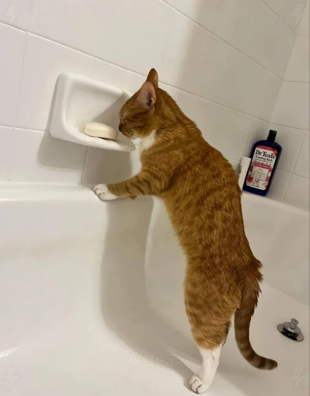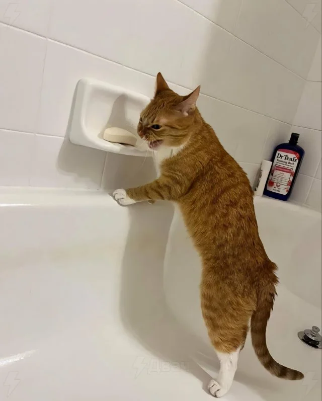Просчитался, но где? (6 фото) Категория: Животные, PEGI 0+ 19 октября 2024 У этого рыжего балбеса есть странная привычка. Он постоянно пытается скушать мыло. Но вкус ему, естественно, дико не нравится. Хозяин уже не знает, как объяснить рыжему, что мыло - не еда. Даже предупреждающие картины в доме развесил! +5 фейлы, Юмор, животные, коты