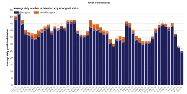 Среднее количество молодых людей, содержащихся под стражей, а также являются ли они аборигенами или нет.