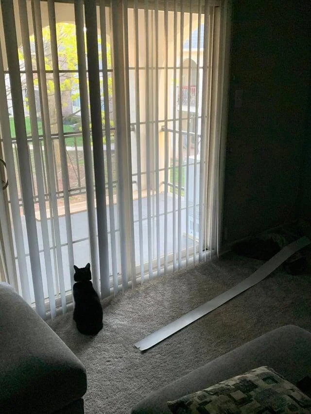 Она просто сорвала часть жалюзи, чтобы ей было удобнее смотреть, что происходит за окном