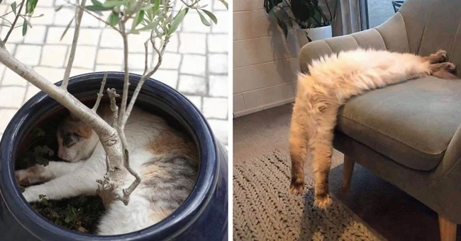 20 случаев, когда коты доказывали, что для сна не существует неудобных мест и поз (21 фото)