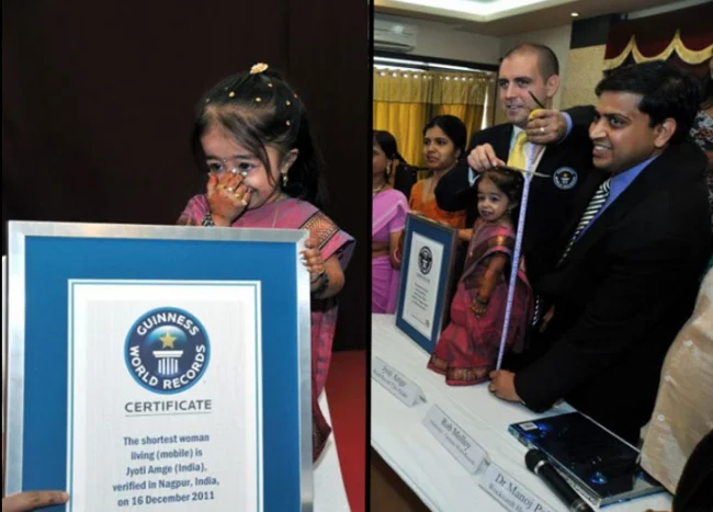 Результаты показали, что средний рост Джиоти 62,8 см, что немного ниже, чем у предыдущей рекордсменки - Бриджитт Джордан из США, рост которой составлял 69 см .