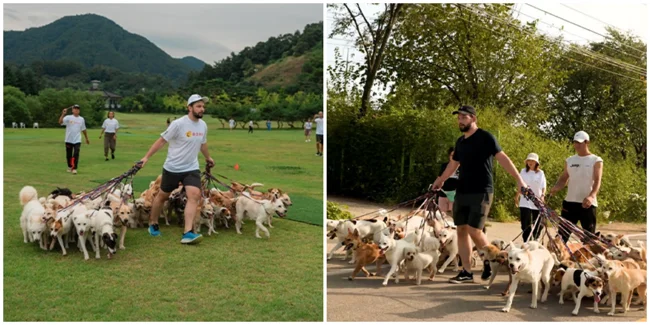 Мужчина одновременно вывел на прогулку 38 собак и побил мировой рекорд (2 фото)