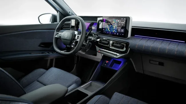 Несмотря на широкие возможности оригинальной отделки, в целом архитектура салона Renault 4 позаимствована у младшего хэтча. Здесь установлены те же угловатое рулевое колесо, два дисплея на 10 и 10,1 дюйма и кнопочный блок управления климатической установкой.