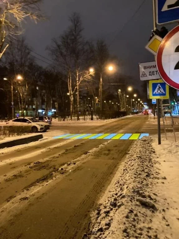 2. Проекция пешеходного перехода на зимней дороге, город Сергиев-Посад, Московская область