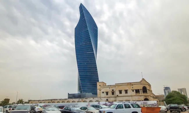 Небоскрёб в Шарке, Кувейт. Башня отличается наклоном в два градуса между одним этажом и другим. Его высота составляет 218 метров. Строительство началось в 2005 году и завершилось в 2009 году.