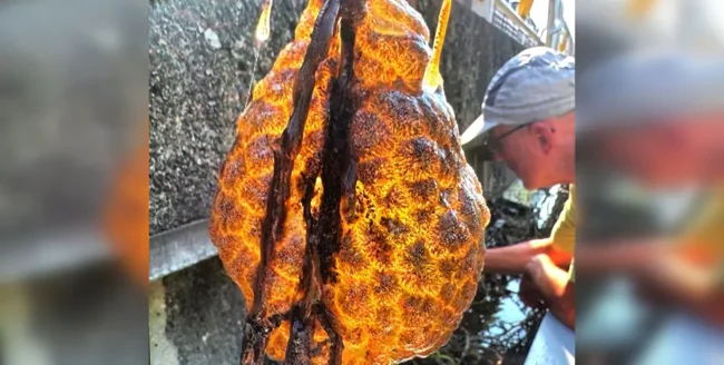 Под плавучим островом возле Нидерландов поселилась колония удивительных существ, которые внешне похожи на мешок оранжевого цвета. Рыбаки, которые вытащили их из моря, увидели объект, размером около метра, который светился в воде.