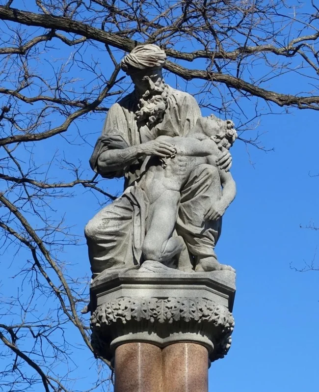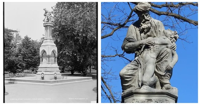 В одном из уголков Общественного сада Бостона, недалеко от пересечения Арлингтон-стрит и Мальборо-стрит, стоит малоизвестный памятник, посвящённый прорыву в медицине - использованию эфира в качестве анестезии. На вершине памятника находится скульптура, изображающая знаменитую библейскую историю о добром самаритянине, оказывающем помощь раненому незнакомцу, которого он встретил на дороге.