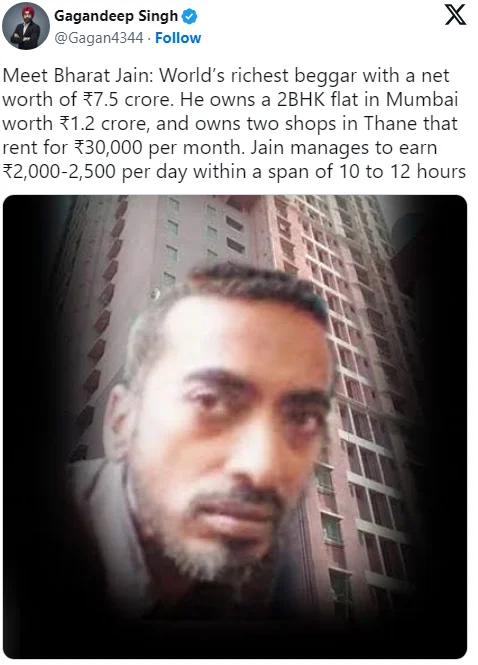 Его зовут Бхарат Джайн, и он начинал как нищий попрошайка на улицах Мумбаи. И нет никакой волшебной истории, как он стал развивать свое дело на выпрошенные деньги. Он прямо и просто сколоти л свое состояние в миллион долларах на попрошайничестве.