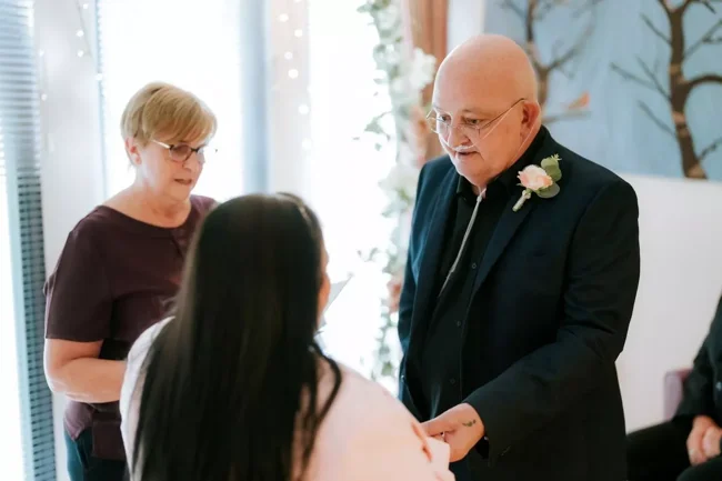 Встретив свою вторую половинку Джули Бернетт, 55-летнюю экономку, мужчина решил больше не терять времени и провести церемонию в хосписе.