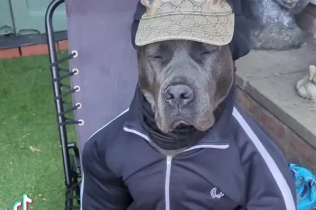 Хозяин питомца, 25-летний Келамн Барбер, одевает собаку в свою собственную одежду, утепляя конечности, чтобы придать ей более человеческий вид. Зрители каждый раз заворожены мужественным выражением морды животного и его удивительным терпением, когда оно позирует на квадроцикле, подтягивается или отдыхает в шезлонге,.