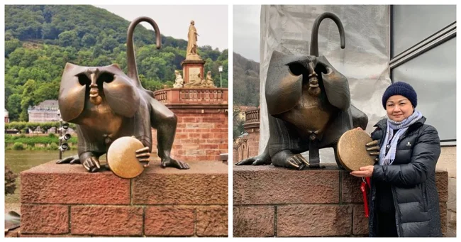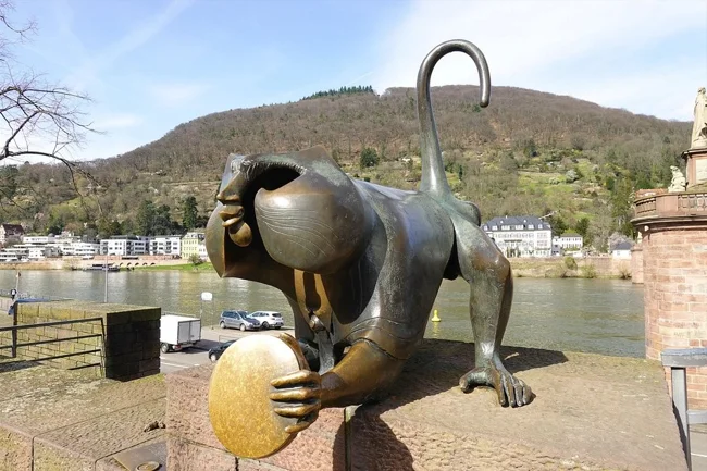 При беглом взгляде это существо похоже на кошку. Но на самом деле это обезьяна – почётный бронзовый обитатель Старого моста немецкого города Гейдельберга. Скульптуру поселили здесь в напоминание людям, которые должны помнить о своём происхождении, равенстве и смотреть через плечо туда, откуда они пришли.