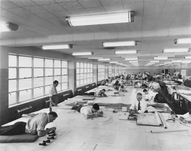 Как выглядели офисы инженеров до появления AutoCAD - двух- и трёхмерной системы автоматизированного проектирования и черчения. Эх, старые добрые деньки, когда клиент не мог вносить правки.