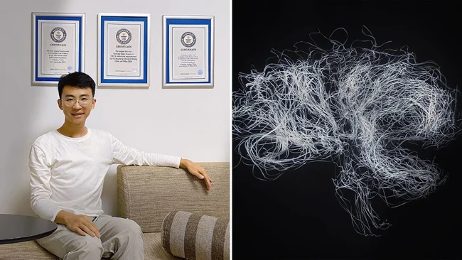 Китаец вырезал из листа А4 самую длинную в мире полоску бумаги и попал в Книгу рекордов Гиннесса. В длину она получилась 108.15 метра — почти как футбольное поле. Затем парень из нее еще и фигуру в виде мозга выложил, ничего не порвав.