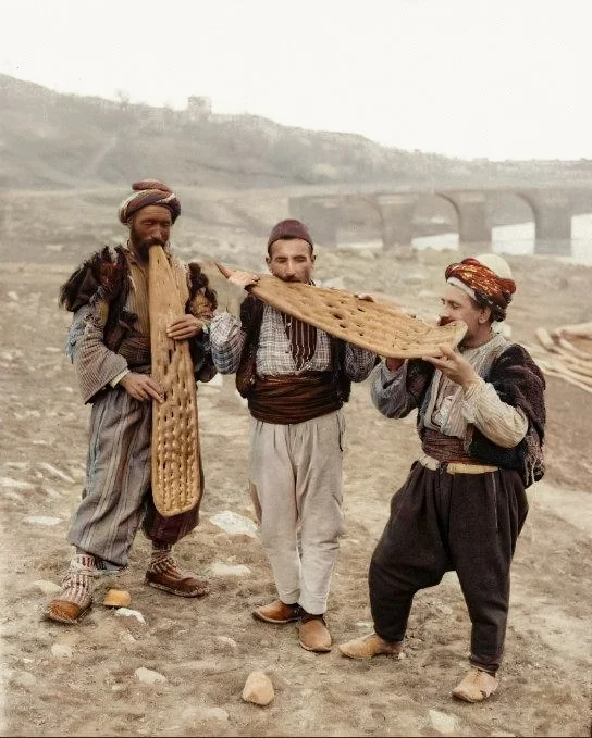 Три курда едят хлеб. Диярбакыр, начало 1900-х гг.