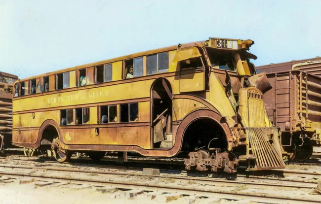 Двухэтажный автобус фирмы Pickwick на железнодорожном ходу. Мексика, 1930-е годы.