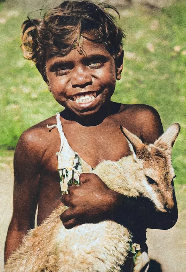 Мальчик из числа коренных жителей Австралии со своим ручным кенгуру, 1955 год.