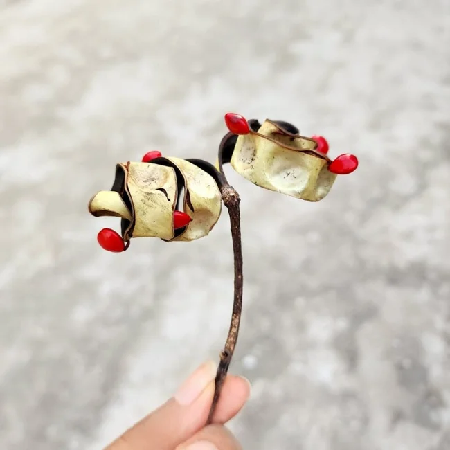 Аденантера павлинья сбрасывает такие семена, что сложно поначалу понять, что же перед тобой находится
