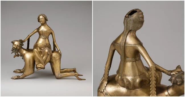 Находка датируется концом XIV — началом XV века, изготовили умельцы в Нидерландах. Этот сосуд использовали для омовения рук во время как религиозных, так и светских церемоний. Сцена, изображённая на акваманиле, это популярный в Средние века сюжет, где Филлида оседлала Аристотеля, символизируя сложные отношения между мудростью и соблазном.