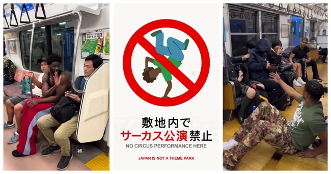 В японском метро расклеивают специальные плакаты, призывая чернокожих гостей быть скромнее (2 фото + 1 видео)