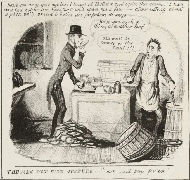 В Лондоне 1820-х годов имя Эдварда Дандо вызывало панику в среде владельцев рестораций и устричных лавок. За несколько лет этот молодой человек приобрёл репутацию главного мошенника Британии. Дандо приходил в ресторан, обычно в устричную лавку, и наедался до отвала, после чего говорил недоумевающему владельцу, что у него нет денег. Предсказуемо, его били и вышвыривали на улицу и часто передавали полиции. Но как бы неисправим он ни был, Дандо, оказавшись на свободе, сразу же направлялся к ближайшему устричному ларьку и повторял всё снова.