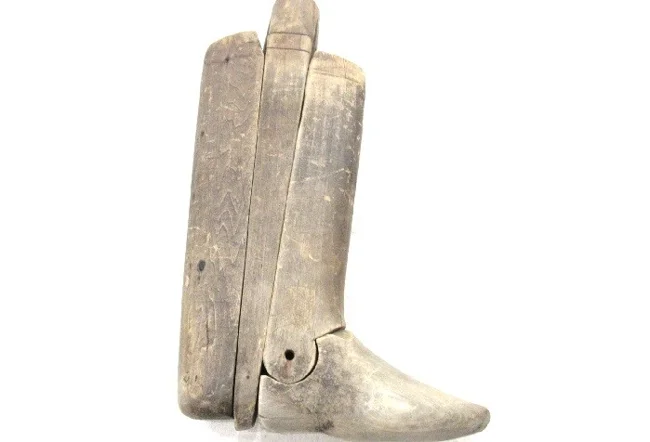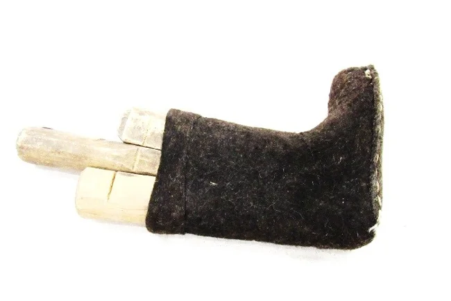 Колодка складывается из двух или трех прямоугольных клиньев и носка-колодки. Она предназначалась для натягивания на нее заготовки валенка для последующего катания , сушки и формовки.