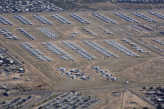 Место хранения и консервации самолетов часто называют "Могильником". Оно занимает 1050 гектаров, где хранится более 3000 самолетов.