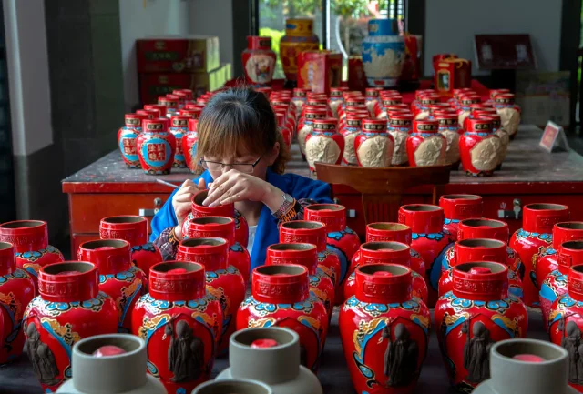 Хуадяо дословно означает «вино с резьбой по цветам». Потому что его принято дарить или продавать в очень красиво вылепленной бутылке, украшенной бантами и расписанной благоприятными цветами и рисунками. А второе название нуэр хун означает «дочерний красный», потому что красный цвет – цвет свадебного наряда невесты в Китае.