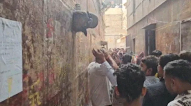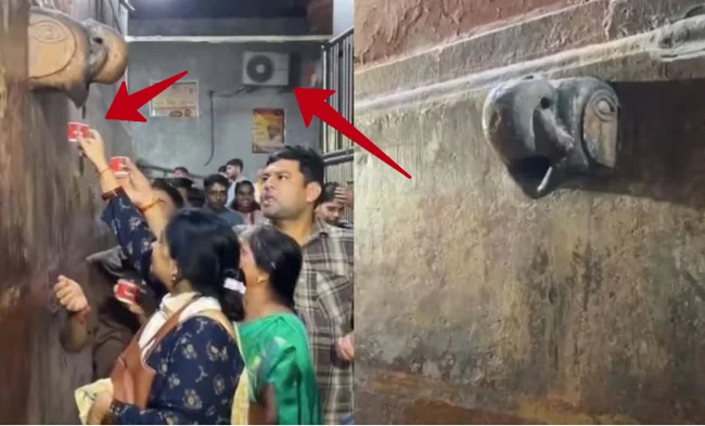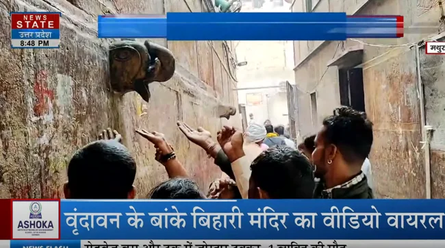 В храме Шри Банке Бихари в городе Вриндаване верующие столпились и даже устроили стихийную очередь за право попить воды, которая капала по чуть-чуть со скульптуры слона. Они решили, что это святая лечебная вода со стоп Кришны.