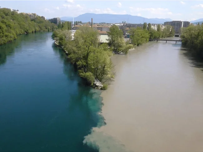 7. Две очень разных реки сливаются воедино недалеко от Женевы