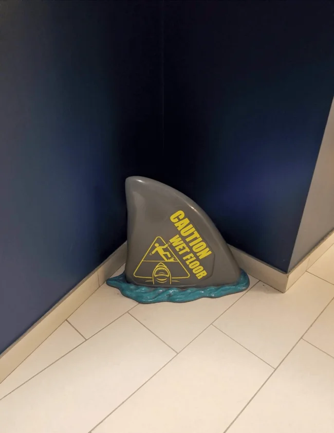 13. Знак «Осторожно! Мокрый пол» в виде плавника акулы