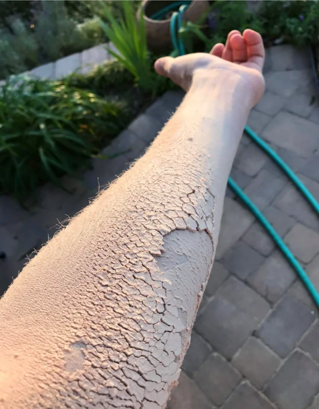 1. Кажется, что кожа высохла и потрескалась, но это всего лишь слой древесной пыли