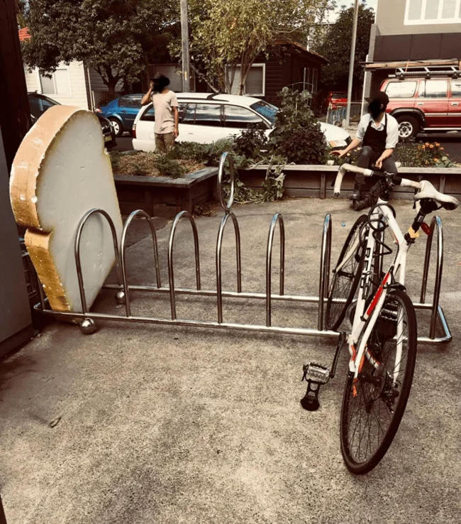 9. Пекарня установила велопарковку в виде тостера с гигантским ломтем хлеба