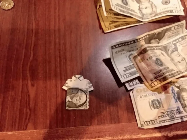 4. Кто-то оставил на чай доллар, сложенный в виде футболки-поло