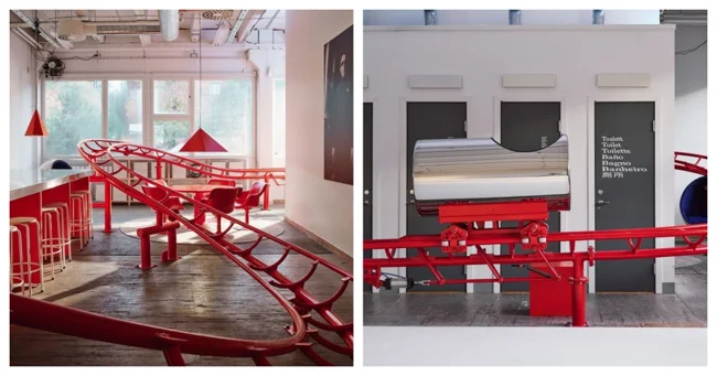 Дизайн-студия в Стокгольме представила офисные американские горки. 60-метровый трасса проходит по рабочему пространству компании.